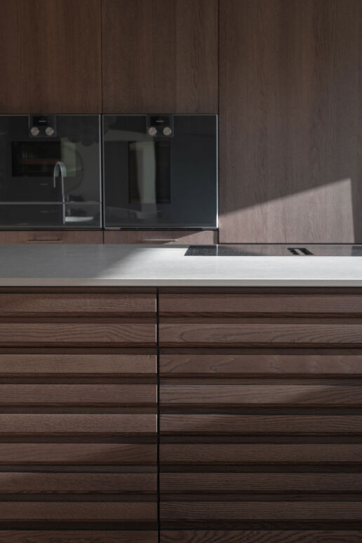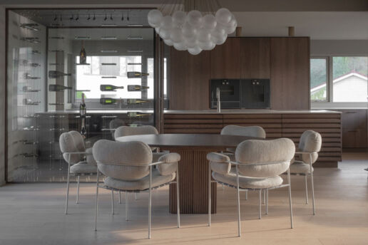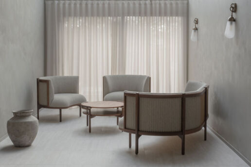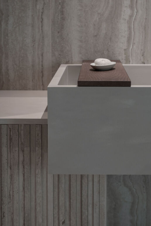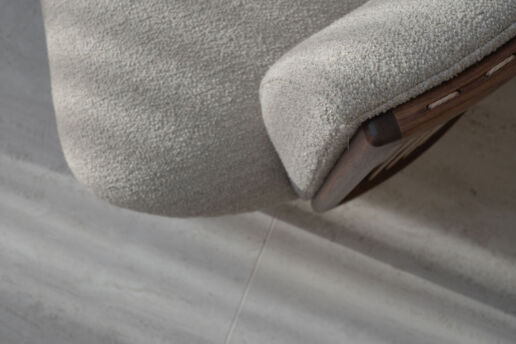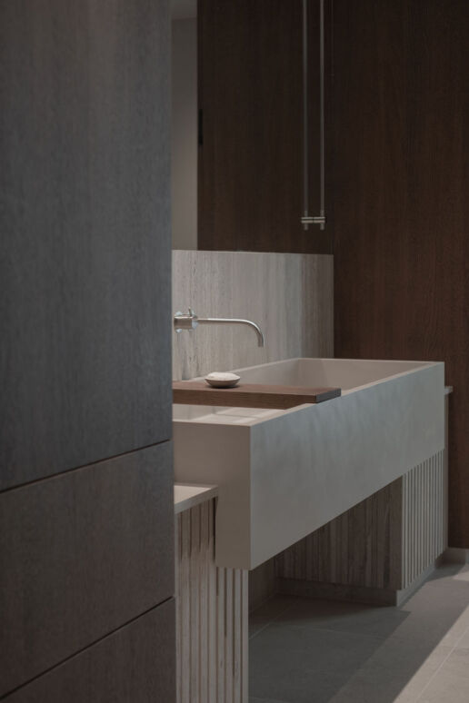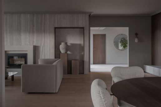 Et hjem som senker skuldrene før du rekker å tenke. Myke linjer, dempede toner og rå, taktile materialer skaper rom der alt faller til ro. En stille, harmonisk balanse mellom funksjon, håndverk og tidløs enkelhet.